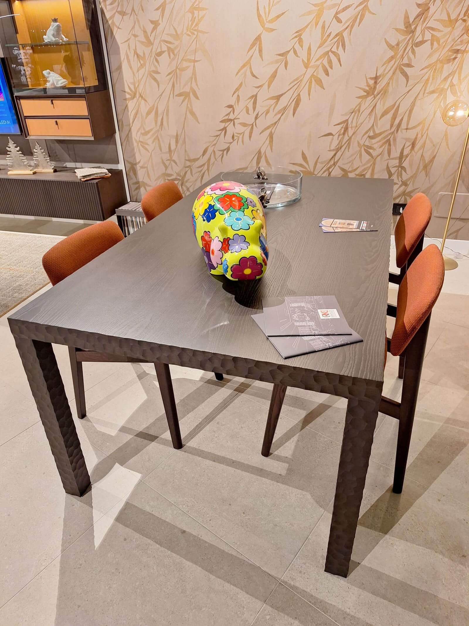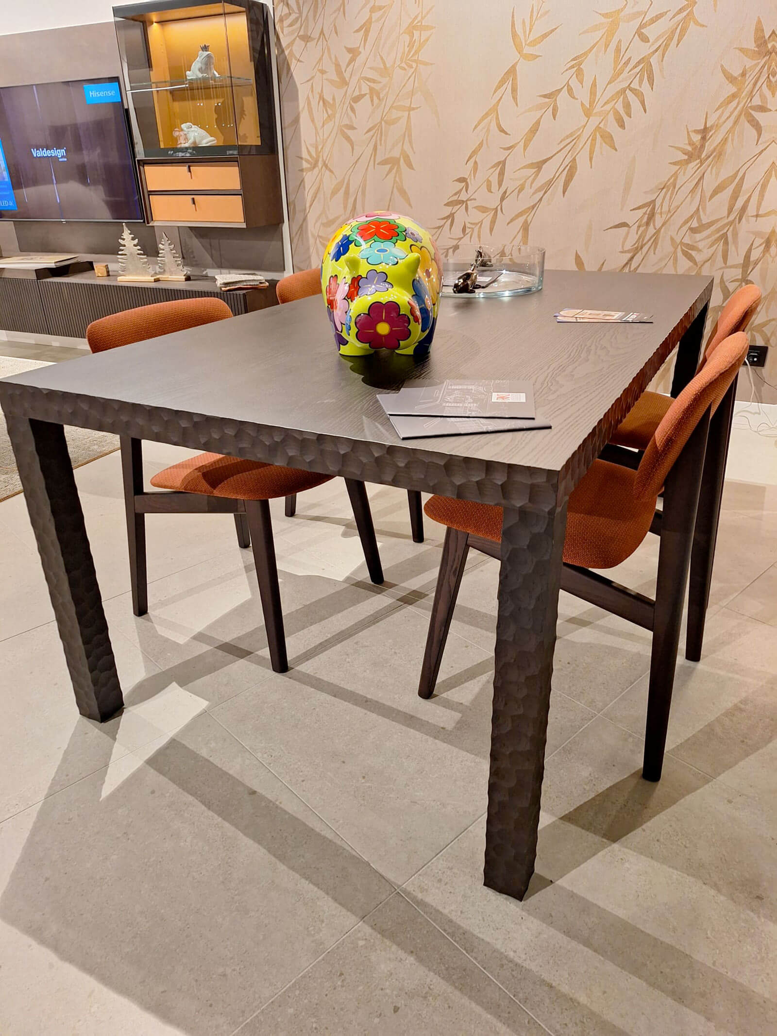 Il tavolo Gubia si distingue per la sottrazione di materia, che diventa un dettaglio decorativo unico.